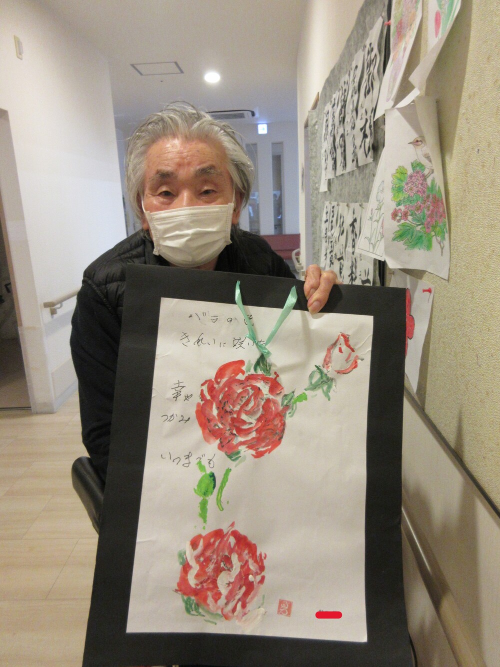 4月の壁飾り 2024年04月08日 先日、チューリップ作りをされました。蝶々も作成されたので壁に飾らせて頂きました。 又、こちらは毎月季節に応じた絵を書かれているA様です。「新作が書けたから、飾って欲しい」と、言われ素敵な作品を飾りました。 合せてご覧になってみてください。