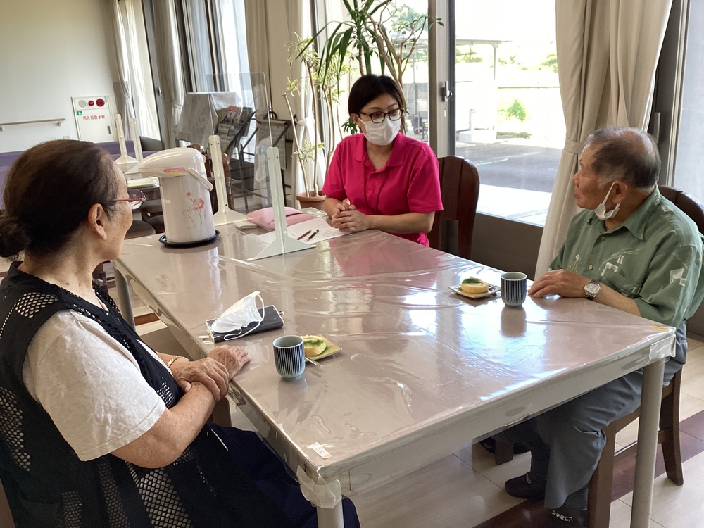 おやつを食べながら、お互いに意見交換もできました。デイサービスを身近に感じて頂ける機会になったと思います。