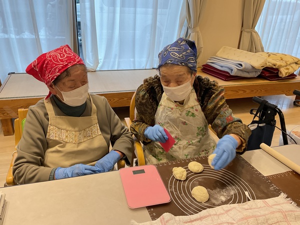 パン教室 2025年02月21日 パン教室 月森先生を招いてのパン教室を行いました。 本日の昼食のメインです。 ツナとコーンが入ったおむすびパンと桜餡が入った桜ロールを作ります。 出来上がったパンに感嘆の声が上がります ! 出来立てのパンに舌鼓です。 皆さんご自分で作られたパンに大満足されたご様子でした。 誕生会 本日は96歳を迎えられるTさんの誕生会です。 「ここに来るのがとっても楽しいです。」とお話くださいました。 これからもお元気でお越しくださいね