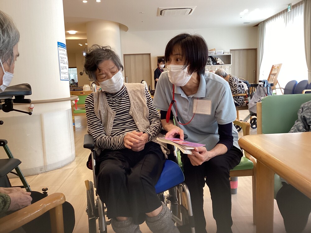 大切なのは寄り添うこと 2025年06月03日 小グループでの活動の様子です。歌うことが今の楽しみです! 昔は音楽の先生だったTさん、素敵な歌声を聞かせてくださいます。 今日の献立は何だったかな? 昼食の献立日記が日課のKさん。「○○の生姜焼き」! 果たして○○の答えはでたのでしょうか? 先日からご利用開始のIさん! 「これから楽しみをさがします」、初日の緊張からだいぶ慣れてきたようで、いい笑顔がでてきました。