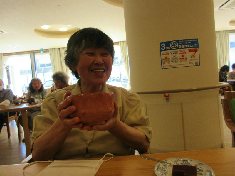 2022年06月16日 素晴らしいお点前です本日は抹茶の日でした!ご利用者様にお願いすると「習っていたから任せて」とさすがの手際で点てて下さいました。召し上がられた方から「素晴らしい御点前ですね!」とお褒めの言葉もありました。お誕生日のお祝いをしました!歌がお好きなMさんとお花がお好きなHさんです。これからもお元気でいらして下さい。