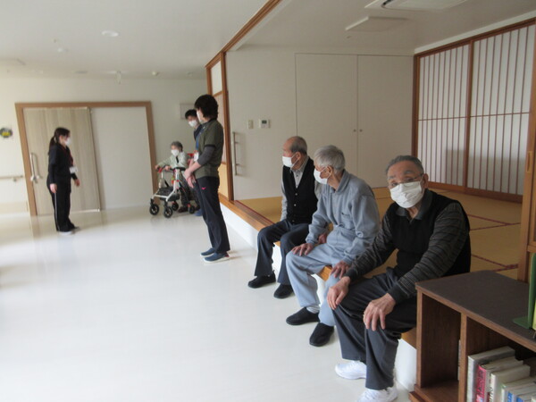 もしもの時に備えて 2023年03月10日 豪雨での土砂災害を想定した避難訓練を行いました 職員同士で避難に当たる役割分担をし、速やかに避難を開始します。 土砂が届かない食堂や2階に避難します。 職員の誘導で、ご利用者の皆さんが落ち着いて移動して下さり、安全に避難が完了しました。 火災だけでなく、様々な事態を想定し避難計画を立てています。 今後もご利用者の皆さんの安全を第一に、安心してご利用して頂けるよう取り組んで参ります。