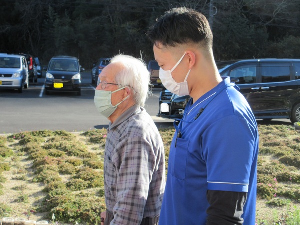 続けています 2023年12月13日 歩行訓練を続けて頑張っておられます。 日に当たると暖かく、気持ちの良い風の中、理学療法士と歩行訓練に出かけました。 「歩かないと足がダメになる。行こう」と意欲的です。 腰や背筋を伸ばすことを意識され、良い姿勢で歩かれています。 寒くなる一方ですが、天気をみながら歩行訓練を続けていきたいと思います。 随時、リハビリ内容の確認や見直しを理学療法士と作業療法士が話し合いをしています。 タブレットを導入し、効率的により良いリハビリ内容を検討しています。