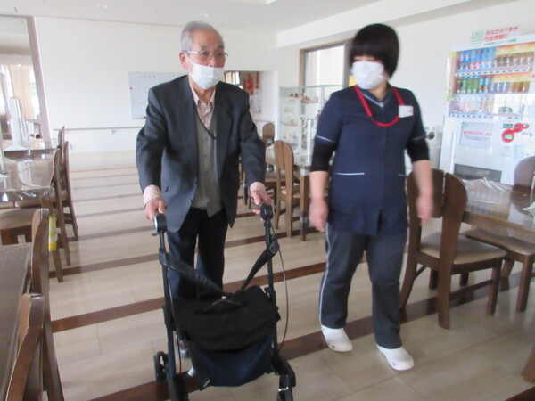 歩行の様子を確認しています 2024年03月06日 先月よりご利用されています。 作業療法士が歩行状態や痛みの有無を確認しています。 お話がお好きで、少しずつデイサービスのご利用も慣れてこられ笑顔も多く見られるようになりました。 屋外用の歩行器と室内用の杖を使用されています。 これからも運動をしながら歩行訓練を続けていきましょう。 本日誕生日を迎えられたS様です。 笑顔が素敵なS様。皆さんに優しく声をかけて下さいます。 これからも元気にデイサービスにお越しください。 おめでとうございます。