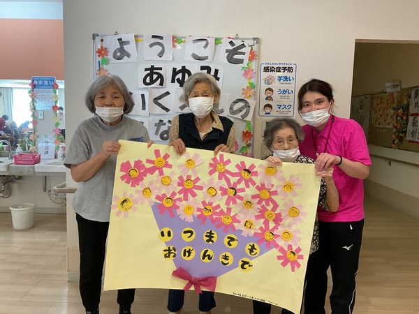 最後は園児さんより「いつまでも元気で長生きしてくださいと」メッセージと素敵な贈り物をしていただきました。
