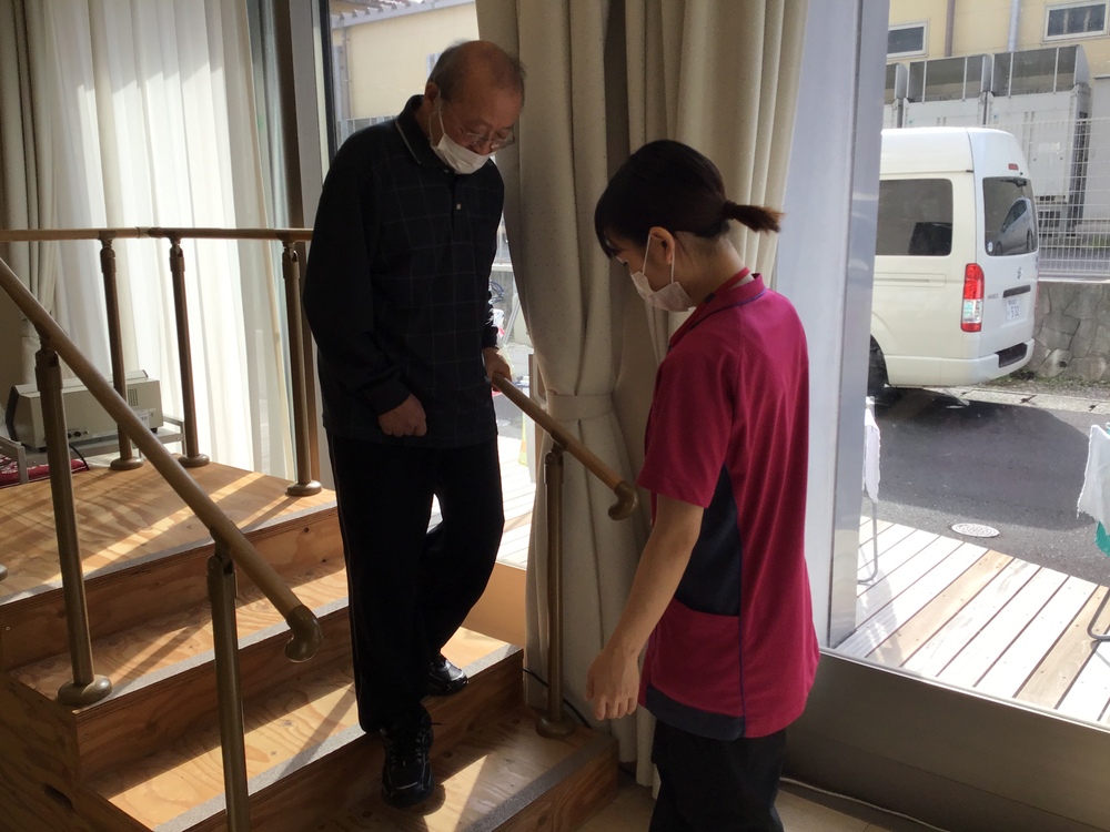 晴れましたよ 2024年10月16日 朝の雨が上がり、午後から心地よい風を感じる気持ちの良い天気になりました。 こんな日は機能訓練指導員と一緒に外へ リハビリに行きます。 畑を見たり花を見たりお話をしながら 足がつまずかないよう常に声掛けを行いゆっくりと歩きます。 ご利用者Mさんも自然と笑顔に。 室内訓練も、自宅の環境に合わせ、つまづきが無いか、足は上がっているかきちんと確認します。 今後も一人一人の生活や目標に合わせた機能訓練をしていきます。