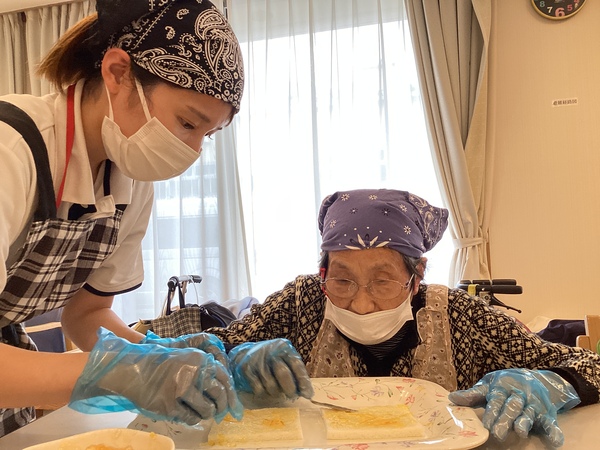 ジャムサンド作り 2024年10月21日 ジャムサンド作りに参加されました ジャムを均一に塗る作業やパンの生地と生地を綺麗に合わせることを意識されていました。 クッキング活動ではやりがいや完成品が目に見える為、達成感や食べる楽しみが沸いてきます。 ジャムがたっぷりつまったジャムサンドが完成しました。 お誕生日を迎えられるU様です 歌集を見ながらパソコンで打ち込むことや絵描きを楽しみにされています。 また素敵な作品を拝見させてください。 おめでとうございます。