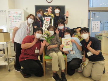 お花のお世話がお好きで、いつも上手に生けて下さるTさん。これからもお元気でデイサービスにいらしてください。