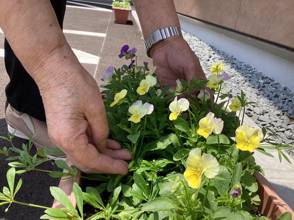 入園者Fさんが、ビオラの夏越しに挑戦されています