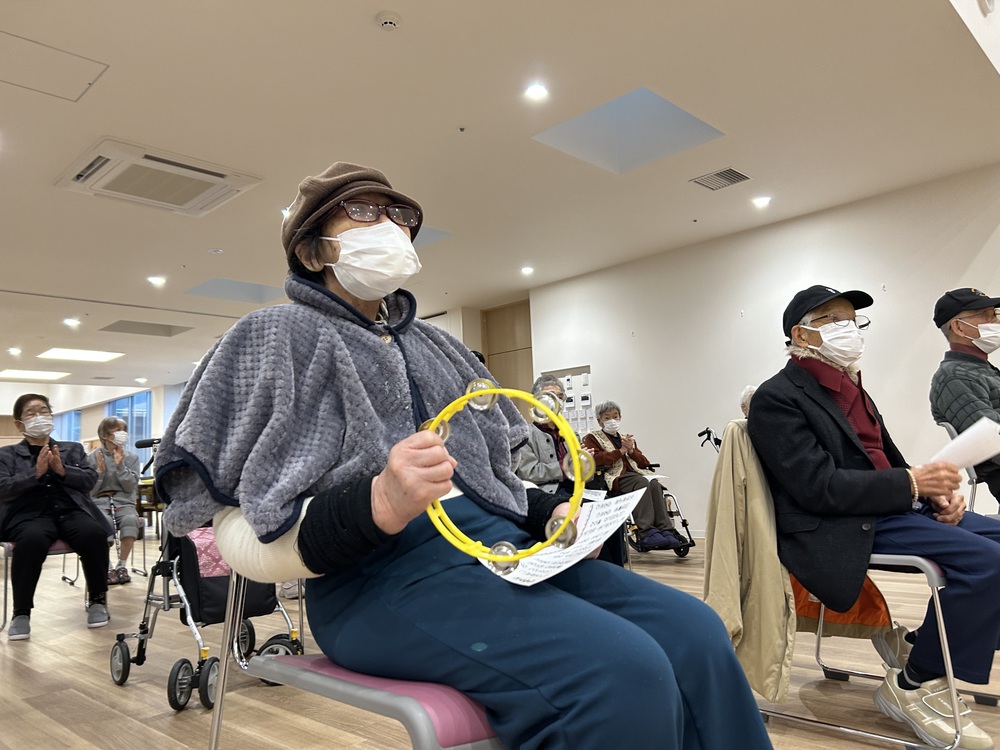 クリスマスコンサート当日! 大田ウインドオーケストラ様をお招きし、演奏の披露をしていただきました! 演奏がしたいHさんはタンバリンを使って演奏を楽しんでおられました! 職員も一緒になって踊る演目もありました! とても素晴らしい演奏を聴くことができ、皆さん「また聴きたい」と喜んでおられました!