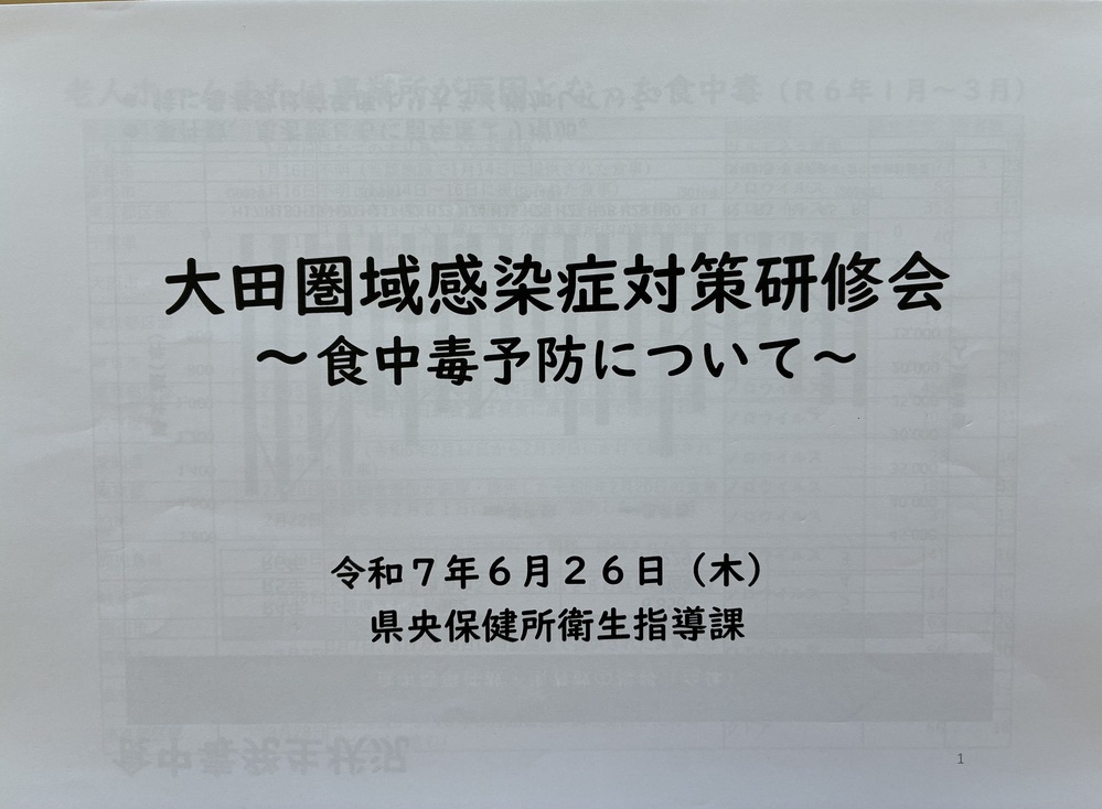 食中毒を予防しましょう!! 2025年06月26日 梅雨到来!今日は保健所主催の感染症予防研修会に参加しました。。 ヘルパー事業所と一緒にリモートで参加しました。 「持ち込まない、拡げない、加熱する、やっつける」毎年受ける研修ですがその都度新しい発見があります。。 入園者の皆さんの楽しみな食事、健康で明るい毎日のために職員全員で感染予防を徹底していきます。。