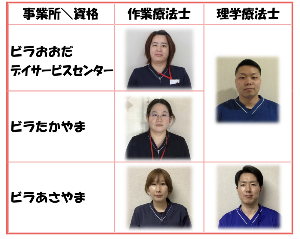 機能訓練の充実に向けて 2023年04月27日 当法人のデイサービスセンターでは機能訓練指導員として作業療法士3名、理学療法士2名が勤務しています ビラあさやまではリハビリルームを設けてご利用者の日常生活に合わせた環境づくりを行い、より実践的な機能訓練に取り組んでいます 基本動作の維持、向上のために歩行訓練やレクリエーションを通した活動など日々考えながら実施しています 引き続きご利用者の要望を伺いながらリハビリ内容、環境面を検討して機能訓練の充実に向けて取り組んでいきます