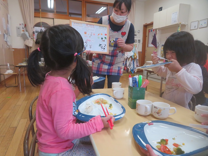 子どもたちに自分で食べたいものを選んでもらうことで、食べることへの興味を持ってもらい、給食の時間が楽しくなると嬉しいです♪