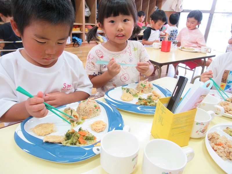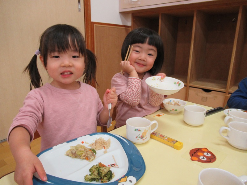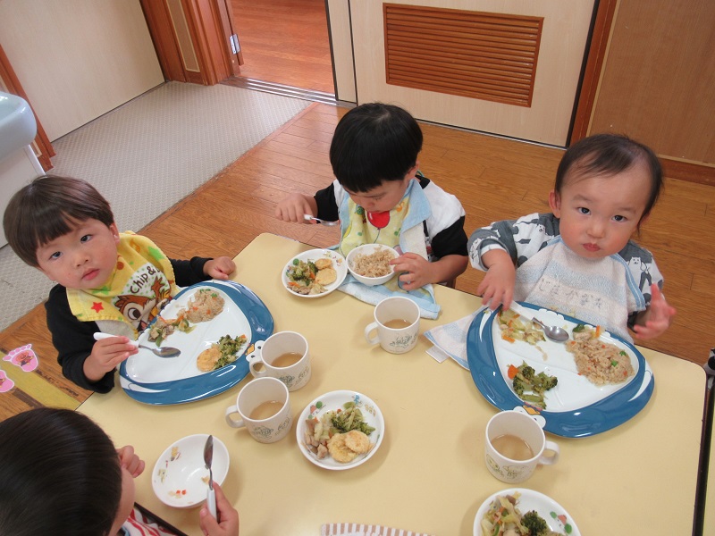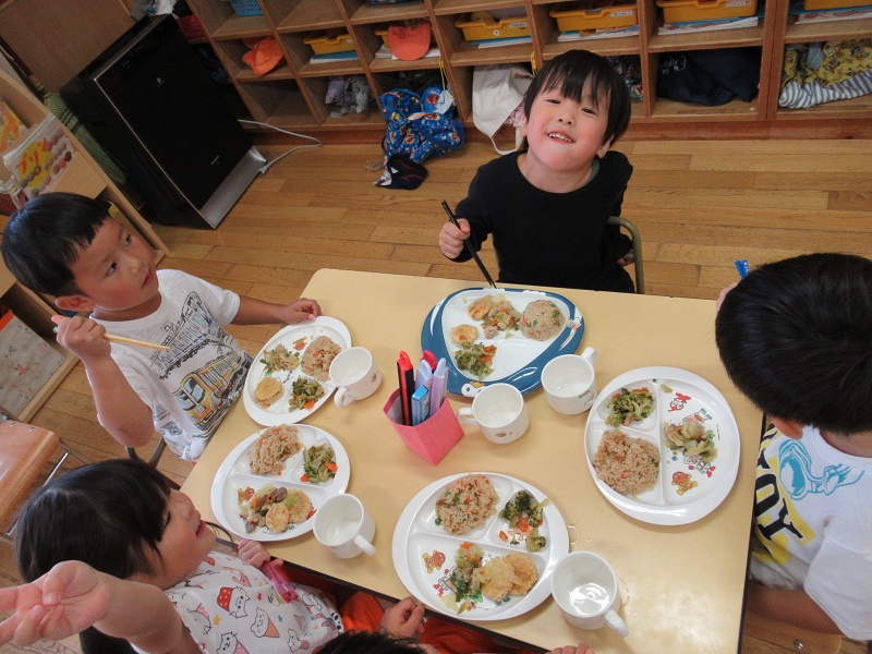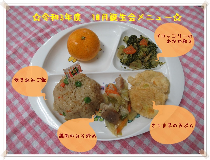 「給食先生、作ってくれてありがとう~」「さつま芋の天ぷら美味しいよ~」とみんな喜んで給食を食べていました♪