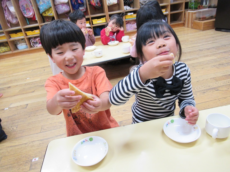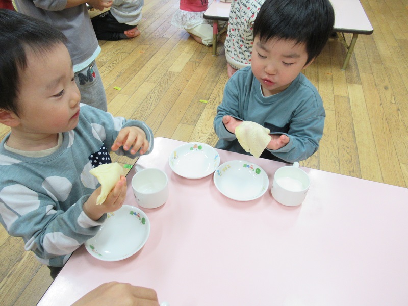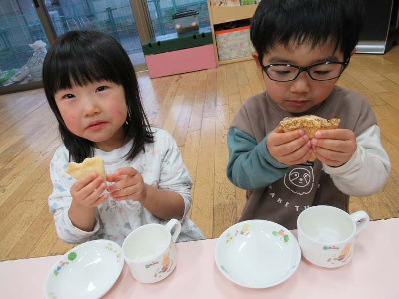 子ども達も、もちもちのクレープ生地と甘いカスタードクリームの組み合わせに笑顔があふれていました♡