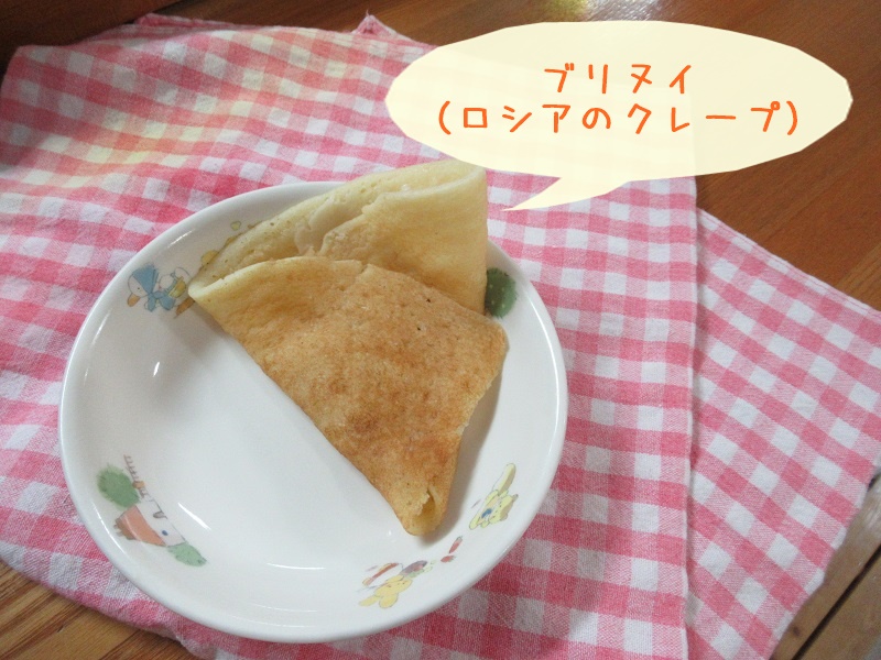 午後のおやつはロシアの行事食で食べられる「ブリヌイ」です。