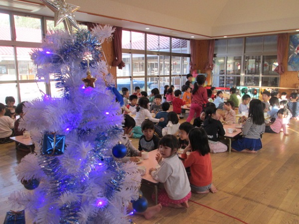 おやつの時間には幼児クラス合同で楽しいクリスマス会食をしました♪いろんな形のクッキーに会話も弾んでいました。