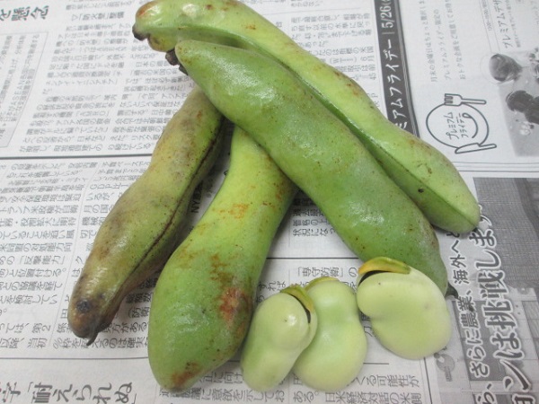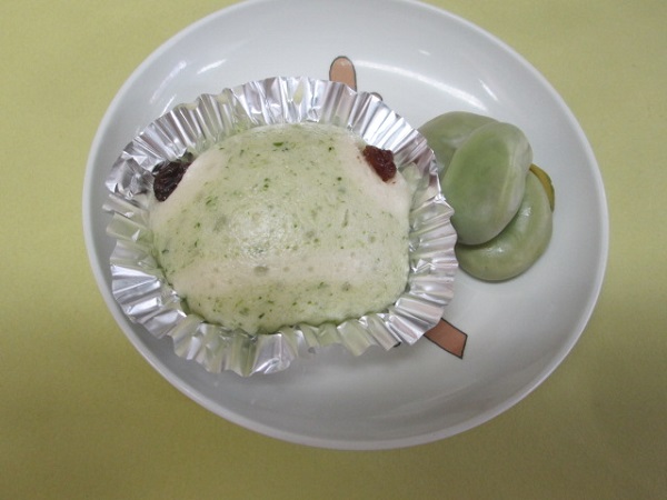 ろけっと組さんは今日のおやつと一緒に塩ゆでしたそら豆も食べました。