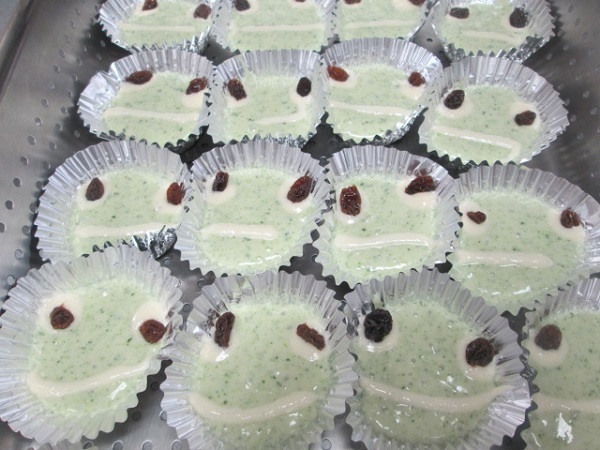今日のおやつは「カエルちゃん蒸しパン」です。