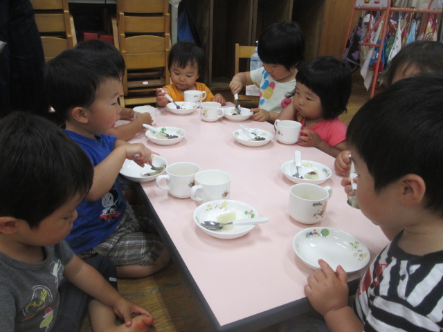 今日のおやつにはパートの先生から頂いたじゃが芋も食べました。