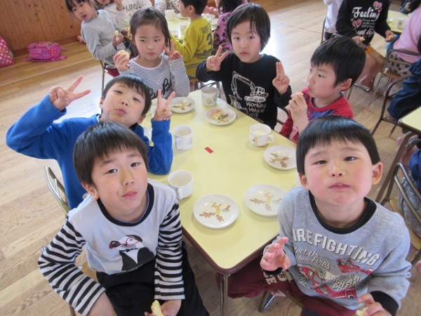「先生!またこのおやつ作ってね!」と、おやつの時間を楽しみにしてくれていたろけっと組さん。小学生になったらお別れ会でプレゼントした相愛レシピを見てクッキングしてね♪
