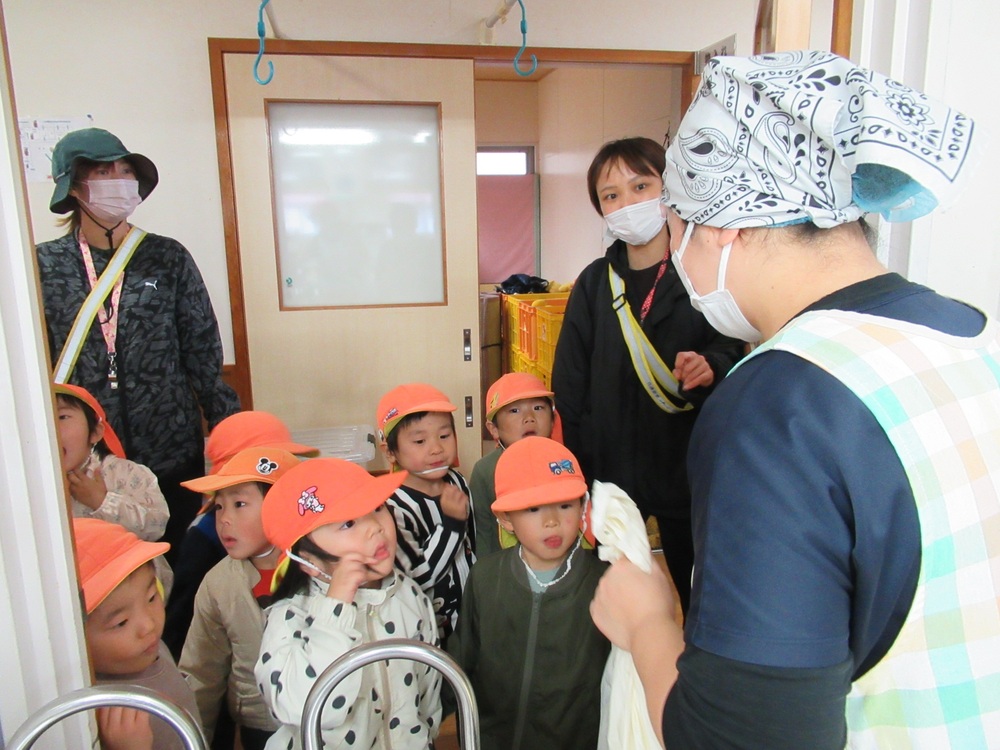 おつかいから帰ったばす組さんは、給食室までお魚を届けてくれました。