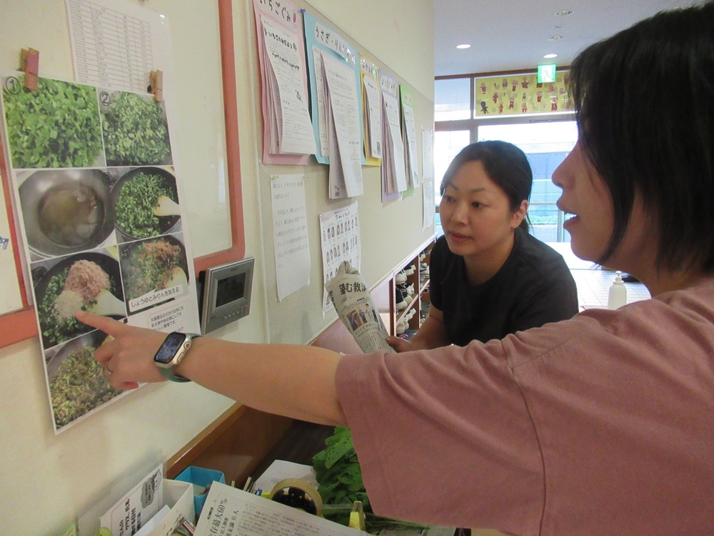 新鮮な大根の葉っぱをもらったよ☆ 2024年10月02日 農家さんから、新鮮な大根の葉っぱを頂きました。 送迎時に、栄養士がご家庭での食育にも役立てて欲しいという思いで、大根の葉っぱを保護者の方に配りました。 大根の葉っぱを使ったふりかけのレシピの説明を保護者の方にしました。 保育園でも、この季節ならではの旬の食材を使ったふりかけや和え物などを提供しています。 大根の葉っぱは、柔らかく苦味も少ないので子ども達にも食べやすいので、ぜひ使ってみてください。