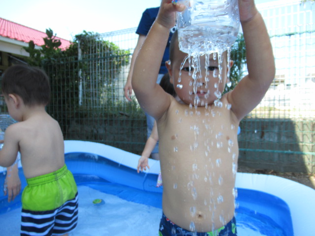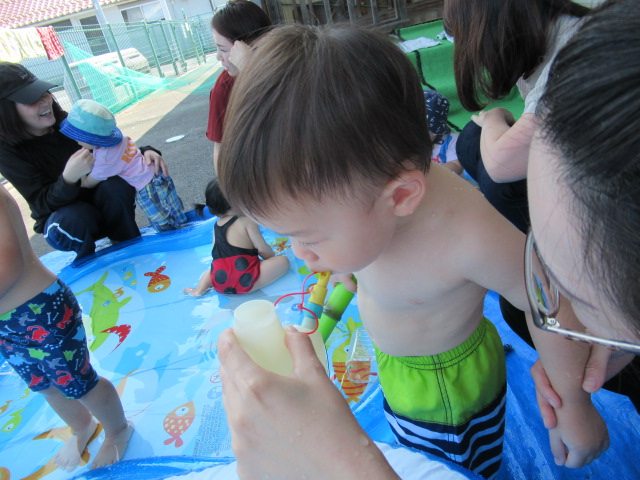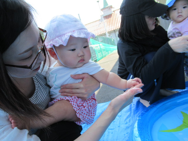 お母さんと一緒にお水を触ってみました♪