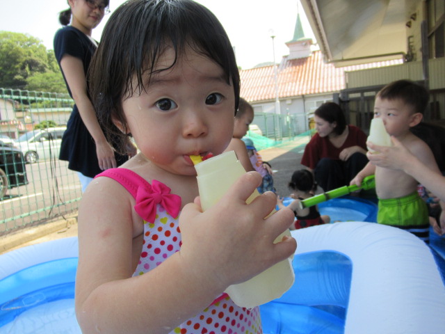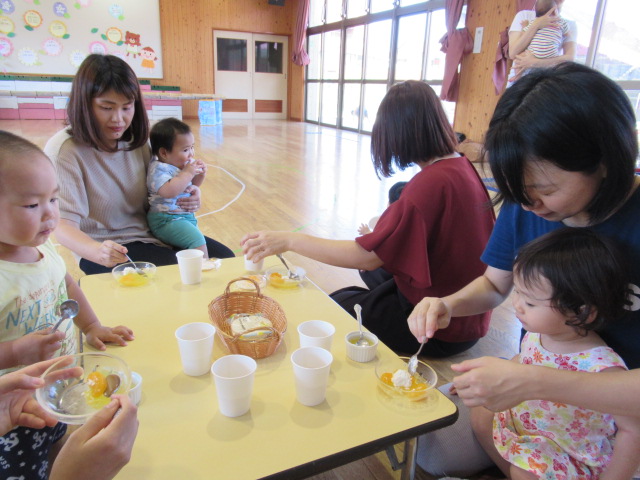 水遊びの後は、茶話会もしました。今回のおやつは手作りのオレンジゼリーです♪