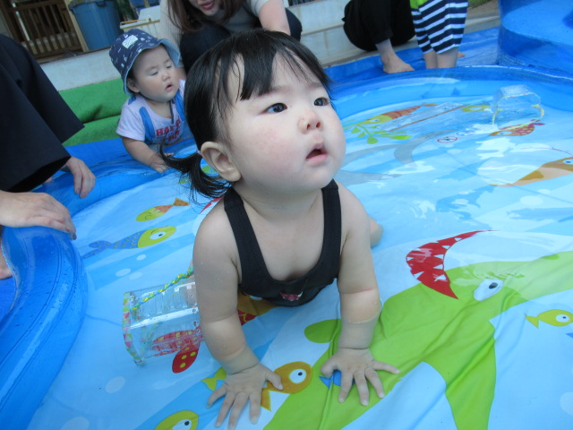初めてのお水の感触はどうかな~?