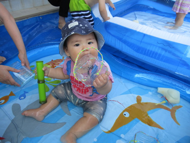 「すまいるくらぶ♪」に来られたのお友だちと一緒に、水遊びを楽しみました☆