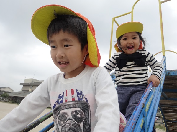 2018年04月04日 大田小学校で遊んだよ☆ろけっと組さんと一緒に大田小学校へ行きました。手を繋いでもらって嬉しいね♪大きな滑り台に大興奮!!順番も上手に待てますよ☆お友達と一緒にシュ~!「タッチ♡」とってもなかよしです♡シーソーが楽しくて笑顔も弾けます♪とっても楽しかったね!!またみんなでお出掛けしようね♡