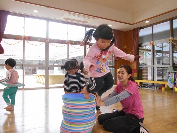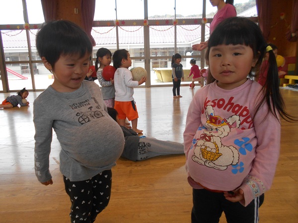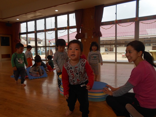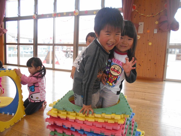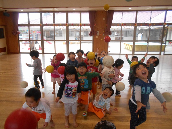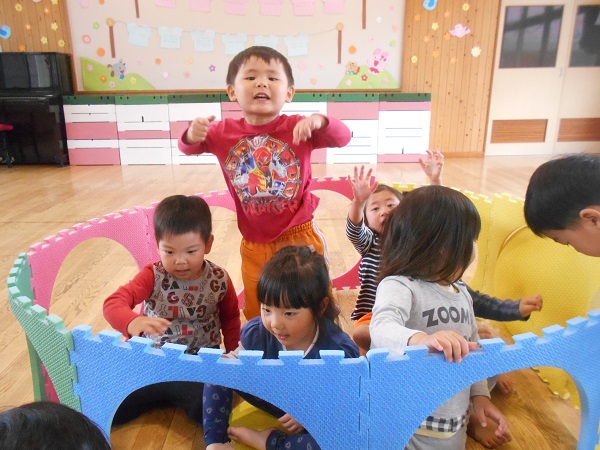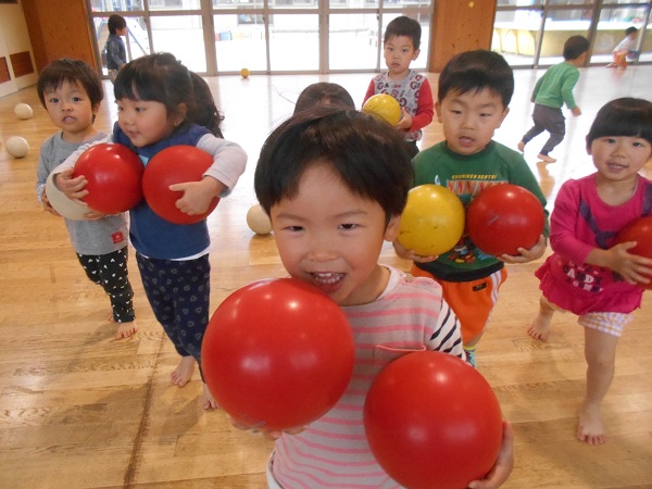 2018年04月11日 遊戯室で遊んだよ♪今日は遊戯室で遊びました!まずはみんなでボール遊びをしましたよ♬お腹が大きくなったよ~♪ばす組みんなで「せーのっ!ポーン!!」素敵な笑顔を見せてくれましたよ✨次はプラポイントで遊びました!お友だちと一緒でにこにこでした■上手につなげて汽車ごっこをしたり、大きなお家を作ったりして楽しんでいましたよ♡○の部分を重ねてジャンプにも挑戦していました!みんなでたくさん遊んで楽しかったね!