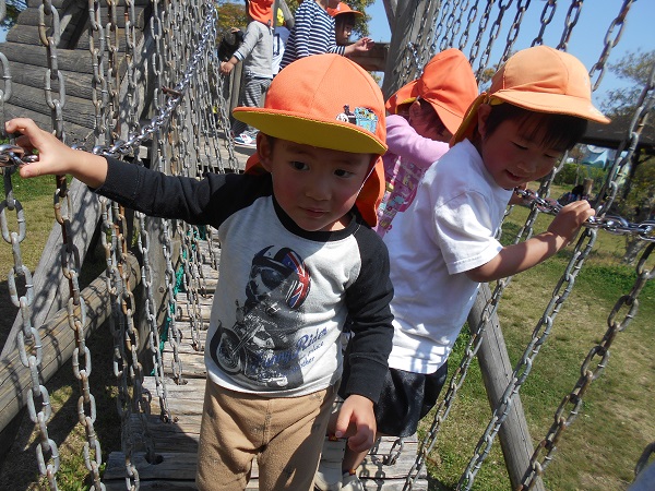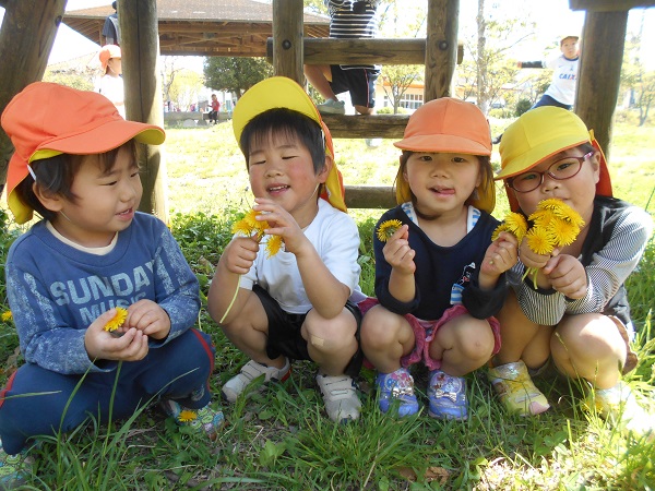 2018年04月20日 ろけっと組さんと!ろけっと組さんと一緒に鳴滝公園へ行きました。手をつないで仲良く出発!公園に着くと可愛いタンポポを見つけました。記念にハイチーズ!アスレチックも楽しいね!ゆらゆら揺れる遊具も上手に渡れるよ☆窓の中から顔を覗かせてニッコリ!「せんせい、おーい!」と仲良く声を掛けてくれました。「一緒に乗ろう~!」と楽しいお喋りも弾みます♪ポカポカのお日様の下、元気いっぱい遊んだばす組さんでした☆