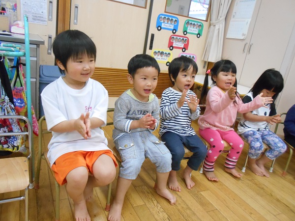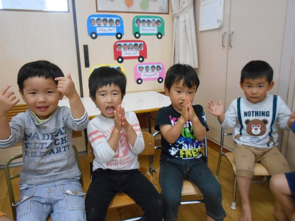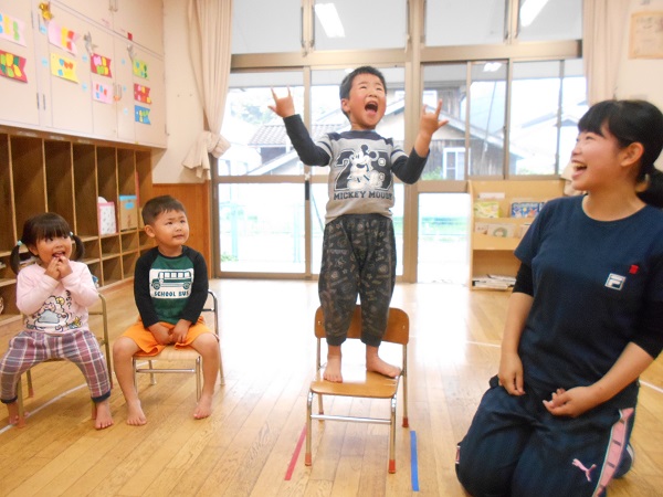 座れなかったお友だちは応援団に変身!「がんばーれ!がんばーれ!」と、とても上手でしたよ✨
