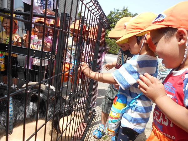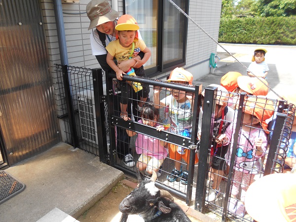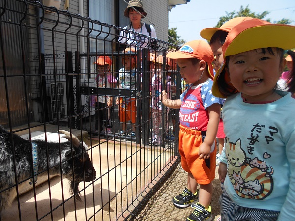 2018年05月15日 メェメェ☆今日もお散歩GOGO!行き先は...じゃ~ん!メェさんのところでした☆嬉しくて笑顔がこぼれるばす組さん!「おーい♡」と声を掛けたり、「メェさ~ん!」と名前を呼んだりしましたよ。「メェさんともっと仲良くなりたい!」というお友だちは、抱っこでもう少し近づいてみました☆メェさんに会えてとっても嬉しかったね☆帰ってからは美味しい給食にニッコニコ!またメェさんと一緒に遊ぼうね♬