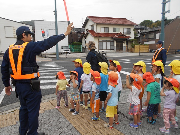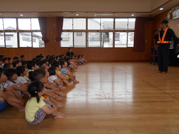 大田警察署からおまわりさんをお招きし、交通安全教室を行いました。