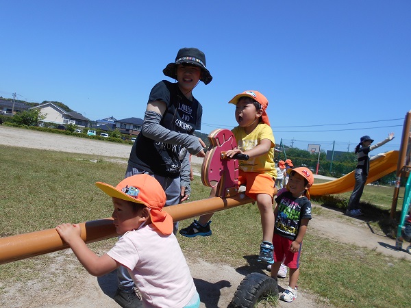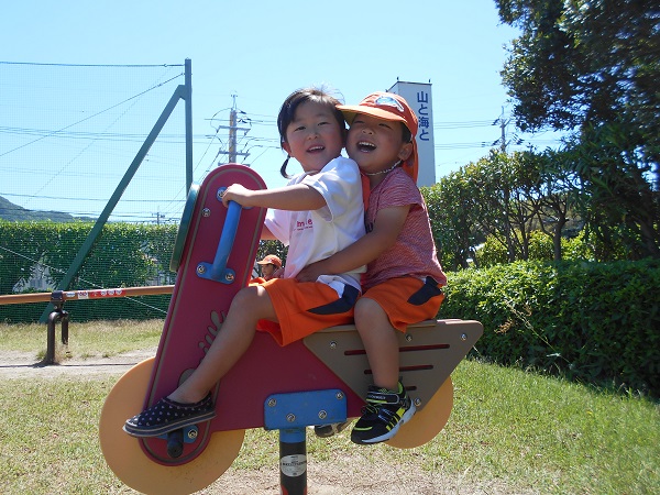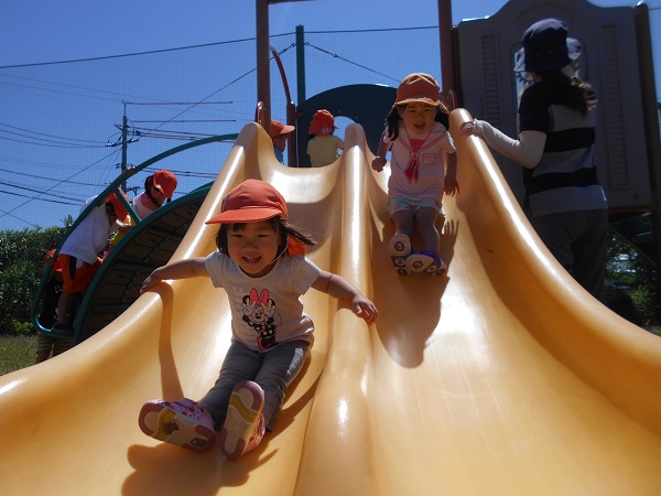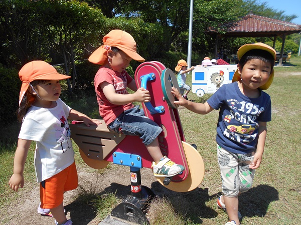 2018年05月21日 宮崎公園に行ったよ♪今日は宮崎公園にレッツゴ―!!みんなで「エイエイオー✊」「出発、進行~!!」と気合いを入れて出発しましたよ♬公園までの道のりも楽しそうなばす組さん✨お友だちとの会話も弾んでいましたよ♪公園ではお友だちと一緒にすべり台♡シーソーも楽しいな~♬バイクや車の遊具でもたくさんの笑顔を見せてくれましたよ!気持ちの良い天気の中、たくさん遊んで楽しかったね♡給食室日記にばす組の給食の様子が載っています。