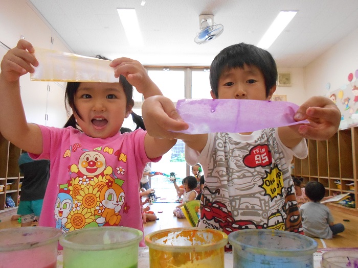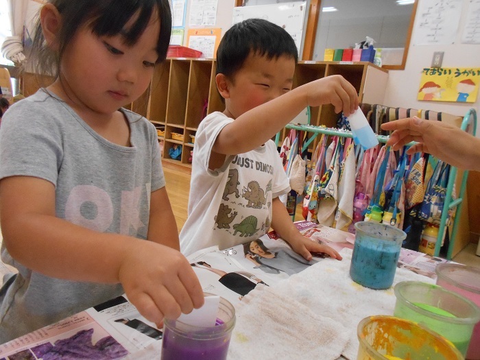じわじわと広がる色に嬉しそうな子どもたちでした■