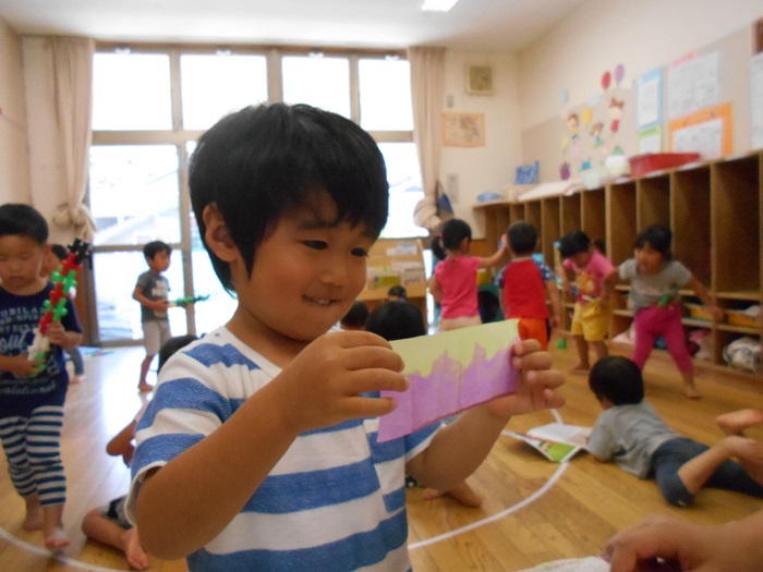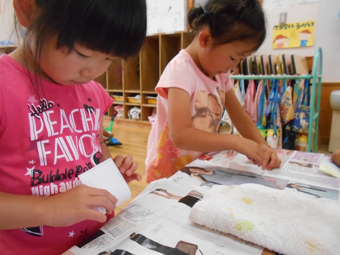 自分で染めた紙に「かわいい❤」とうっとりするお友だちも...