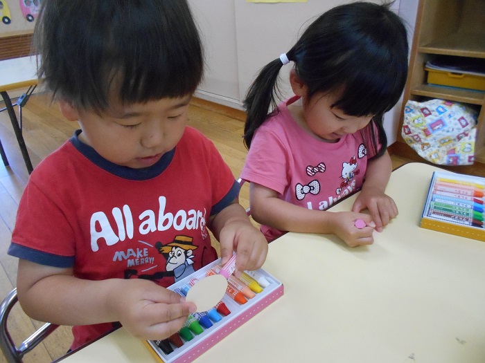 染め紙ができたあとは、自分のお顔を描きました!