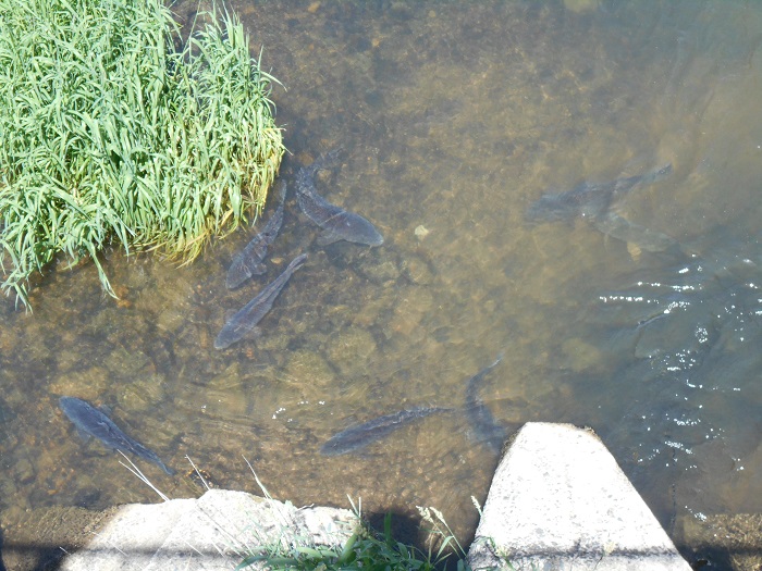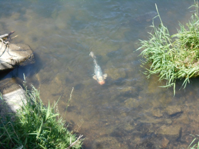 今日は大田高校前の菜洗橋まで、鯉のエサやりに行きましたよ♪