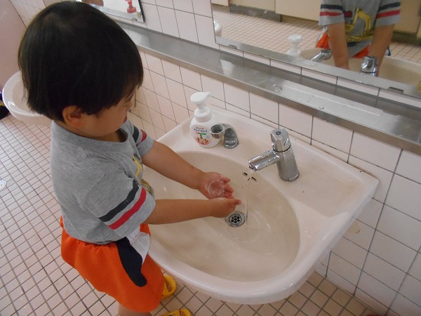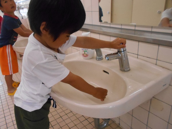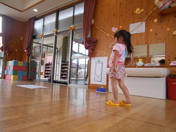 お勉強が終わった後、トイレに行くと「手をきちんと洗うんだよね!」「スリッパはきれいにそろえるといいね!」などなど、子どもたち同士で口々に話す姿が見られました。