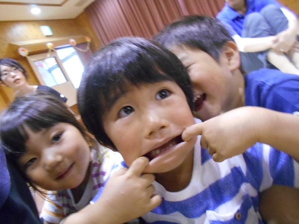 誕生日のお友達が入場するのを今か今かと待ちわびるばす組さん。思わず面白い顔をしちゃいました。