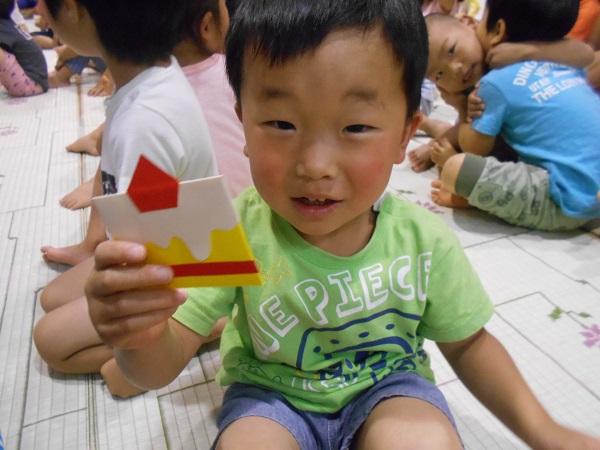 お誕生日のお友達は、みんなの前でしっかりとインタビューに答えることができたので、プレゼントをもらいました♡