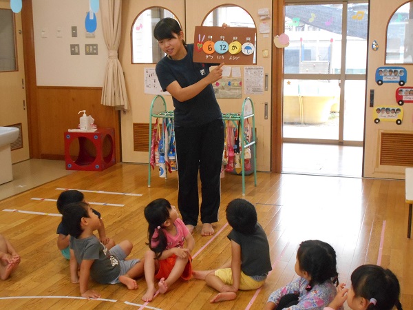 笛が何回鳴ったかを聞き、その数のお友達を見つけて遊ぶゲームをしたり...■