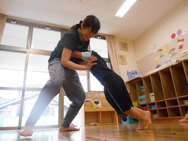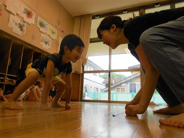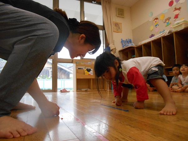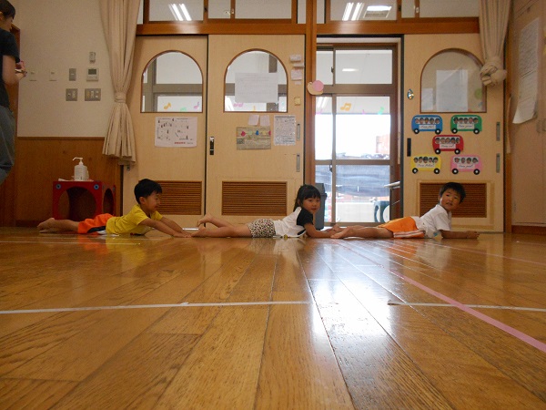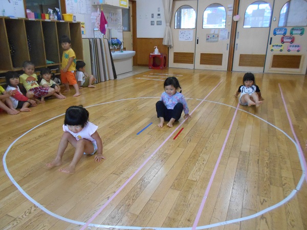 座ったまま前に進むおしりリレーをしたり...♪