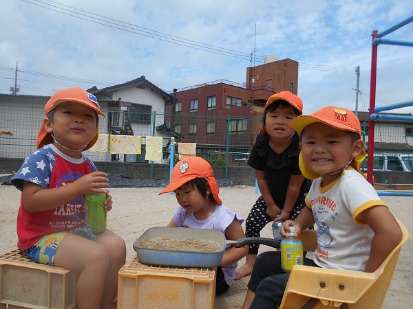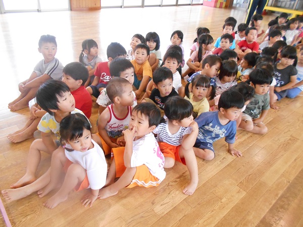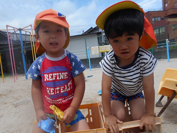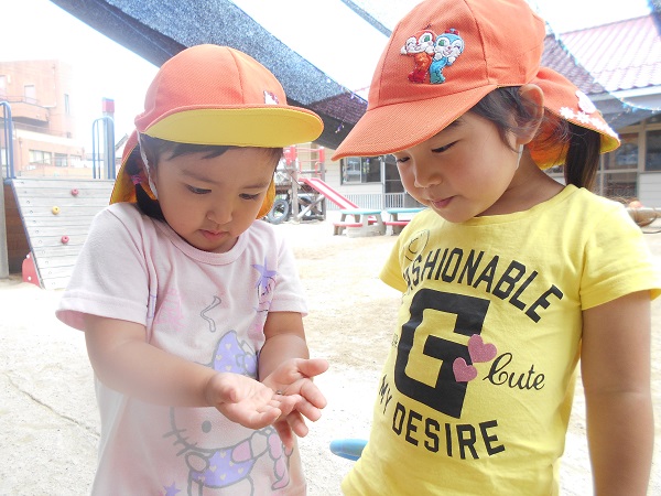 2018年06月15日 今日のばす組さんは...避難訓練に参加し、消火訓練の様子を見ました。静かに避難することができたばす組さんです。その後は外に出て遊びました!けんけんぱ!上手に出来るよ■ダンゴムシを見つけたよ!まんまるで可愛いね♡仲良く一緒に見つめます。「かき氷やさんで~す!」とみんなで大盛り上がり!こちらはお風呂屋さん!お友達と一緒だと楽しいね☆今週もお友達とたくさん遊んで楽しい一週間でした!