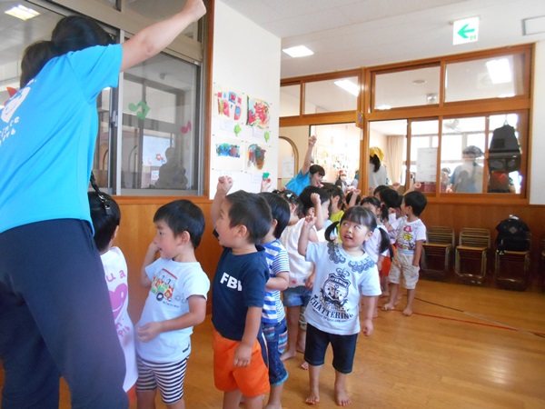 えいえいおー!と気合いを入れて、お家の方の待つ遊戯室へ向かいました。