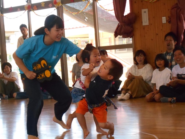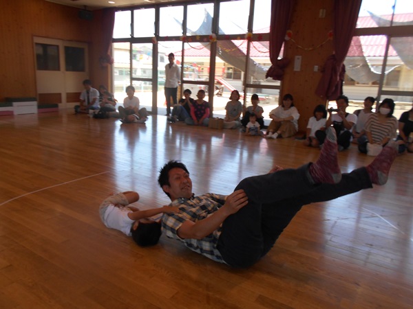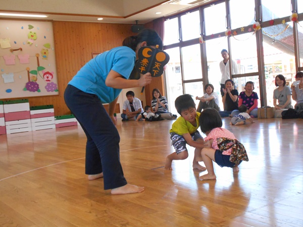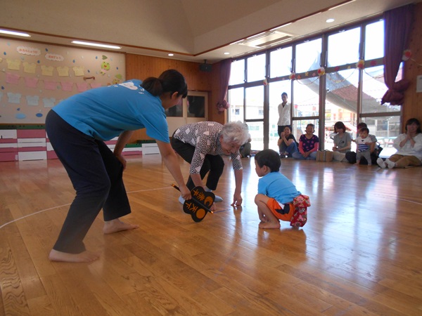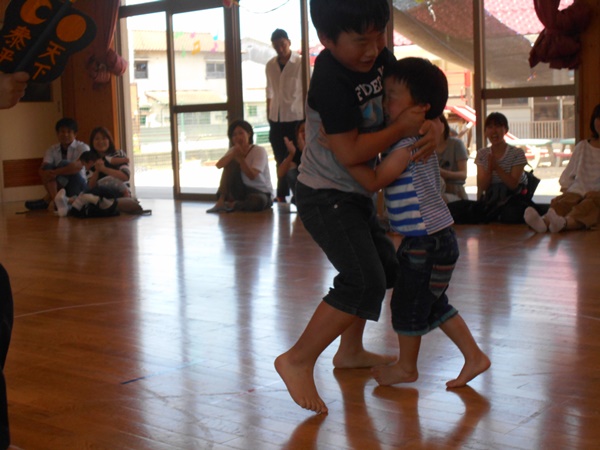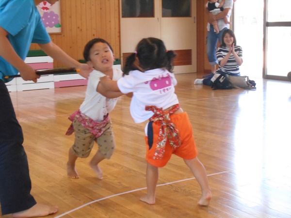 お家の人も参加してくれ、お父さん・お母さん・おばあちゃん・お兄ちゃんと一緒にお相撲も楽しみました。